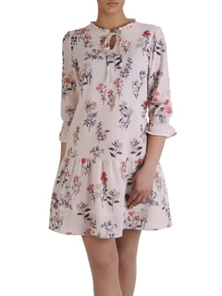 Elegancka sukienka w dziewczęcym fasonie 15671, kreacja w ozdobne kwiatki.