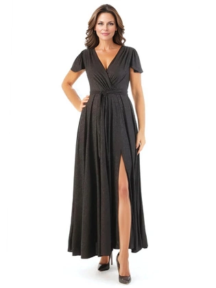 Wieczorowa, kopertowa suknia maxi z połyskującego materiału 34539