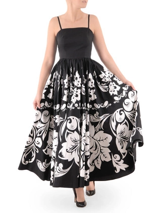 Długa, rozkloszowana sukienka damska na ramiączkach z kieszeniami 38509