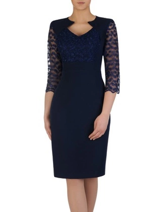 Sukienka wykończona koronką 15223, kreacja z modnym dekoltem.