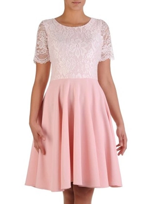 Sukienka damska 17161, elegancka kreacja z tkaniny i koronki.