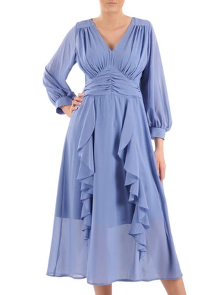 Szyfonowa sukienka podkreślająca biust, kreacja z ozdobnymi falbanami 35365
