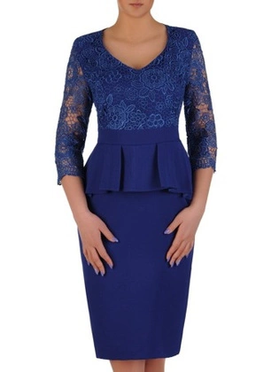 Sukienka z baskinką, chabrowa kreacja z koronki i tkaniny 19957.