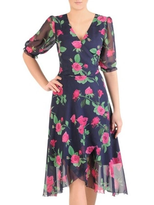 Sukienka kopertowa, elegancka kreacja w kwiaty 33337