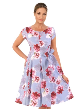 Elegancka sukienka w kwiaty z ozdobnie wyciętymi rękawami 28885