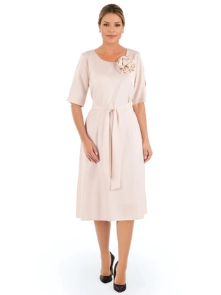 Elegancka sukienka rozkloszowana midi z paskiem – modny fason na wesele i komunię 39790