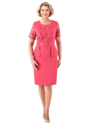 Sukienka z baskinką i koronkowymi wstawkami, kreacja w modnym kolorze 20174