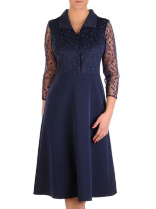 Trapezowa sukienka z koronkowym karczkiem i rękawami 24513