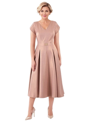 Elegancka sukienka rozkloszowana midi z paskiem – modny fason na wesele i komunię 39779