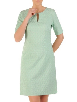 Elegancka sukienka z żakardowej tkaniny, kreacja w miętowym kolorze 29810