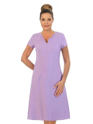 Letnia sukienka z lnu, kreacja z zamkiem na dekolcie 33729
