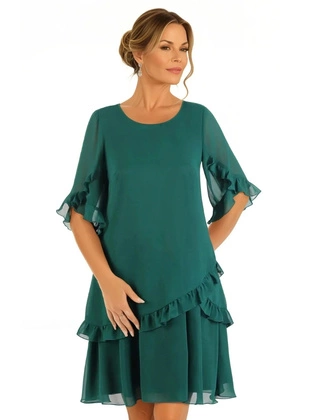 Sukienka z szyfonu, zielona kreacja z falbanami 27275