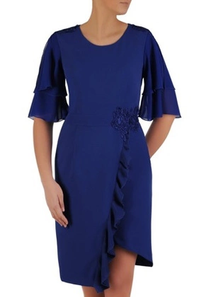 Sukienka wyszczuplająca Klementyna V, wizytowa kreacja z ozdobną wstawką z koronki