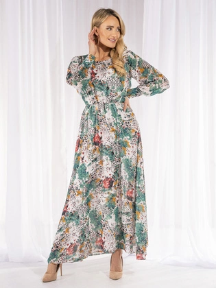 Sukienka w kwiaty, luźna kreacja z tkaniny 20918.