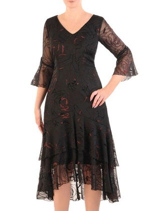 Elegancka sukienka z szyfonową narzutką, kreacja maskująca brzuch 21708