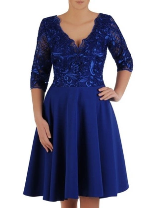 Rozkloszowana sukienka z koronki, modna kreacja z kontrafałdą 22641
