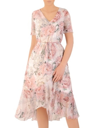 Sukienka na wesele, zwiewna kreacja w asymetrycznym fasonie 38027