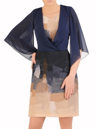 Sukienka z szyfonu, trapezowa kreacja z ozdobnymi rękawami 23614