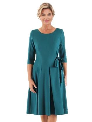 Elegancka, zielona sukienka z ozdobnie wyciętymi rękawami 34430