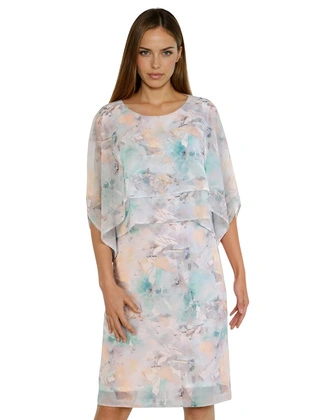 Elegancka sukienka w kwiaty z ozdobnie wyciętymi rękawami 33506