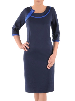 Granatowa sukienka dzianinowa z kontrastowymi wstawkami przy dekolcie 38788