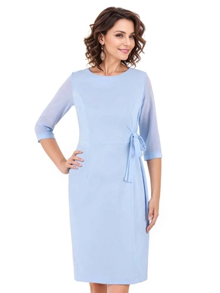 Dzianinowa sukienka z ozdobnym wiązaniem i tiulowymi rękawami 36225