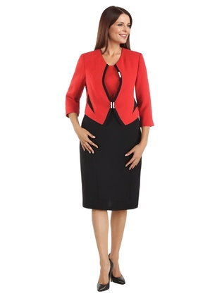 Dwukolorowa sukienka z nowoczesnym żakietem 17126, modny kostium wizytowy.