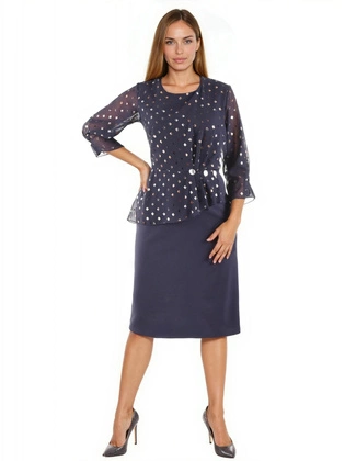 Elegancka granatowa sukienka midi, koronkowa kreacja z bufiastymi rękawami 39764