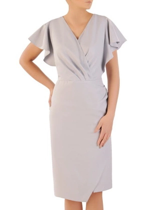 Kopertowa sukienka wyszczuplająca, kreacja z ozdobnymi rękawami 37452