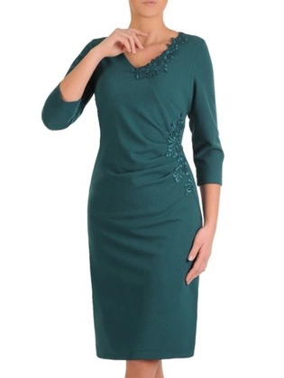 Zielona sukienka z ozdobnymi aplikacjami z koronki 28087