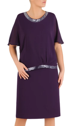 Śliwkowa sukienka wizytowa, kreacja z szyfonową narzutką 23213