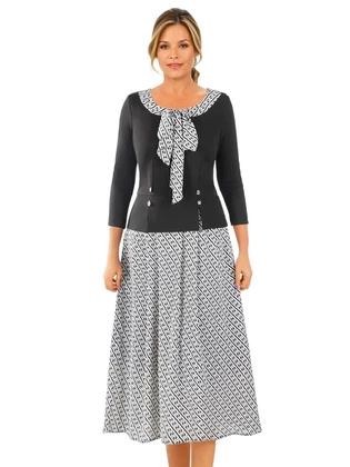 Dwukolorowa sukienka damska z wyszczuplającą baskinką 32333