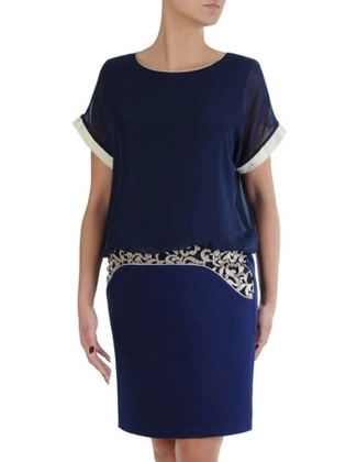 Luźna sukienka z szyfonową górą 18355, atrakcyjna kreacja z ozdobnymi wstawkami.