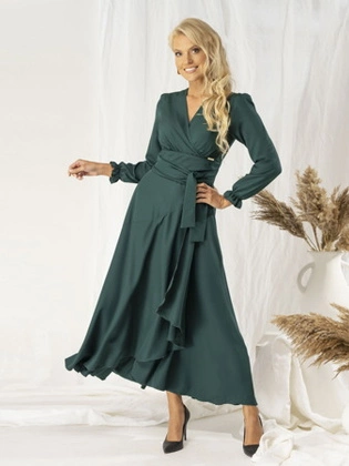 Wieczorowa sukienka maksi, kreacja z kopertowym dekoltem 30826