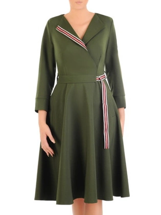 Rozkloszowana sukienka z ozdobnymi lampasami 33946