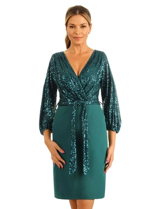 Wizytowa sukienka z cekinowym półgolfem i rękawami 35015