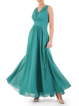 Turkusowa suknia wieczorowa, elegancka kreacja z połyskiem 33295