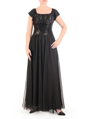 Sukienka wieczorowa maxi, rozkloszowana kreacja z cekinami 34277