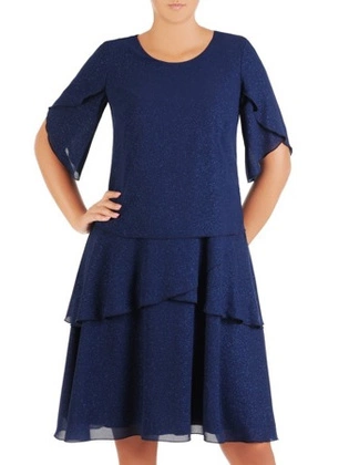 Połyskująca sukienka z dzianiny, kreacja z ozdobną falbaną 26709