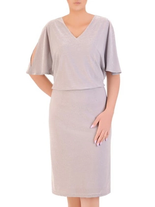 Połyskująca sukienka z luźnym topem, kreacja maskująca brzuch 33183