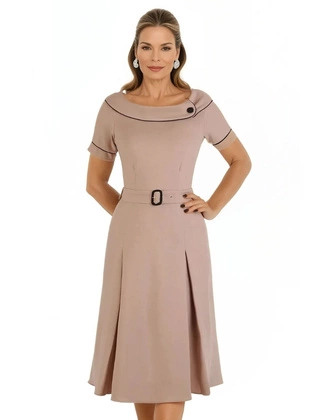 Pudrowa kreacja w rozkloszowanym fasonie 20012.
