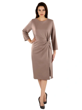Dzianinowa sukienka z ozdobnym wiązaniem i tiulowymi rękawami 24418