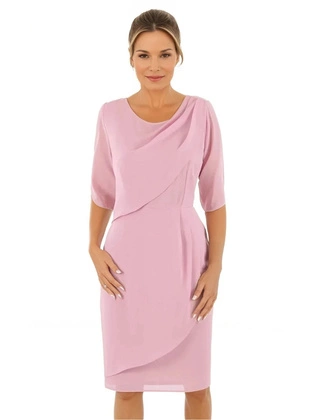 Beżowa sukienka ołówkowa midi – elegancka sukienka wizytowa z krótkim rękawem 40358
