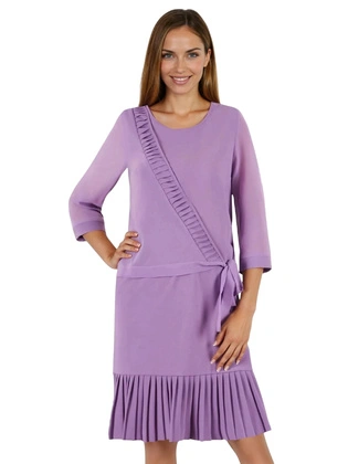 Liliowa sukienka z ozdobnie wyszczuplającym wiązaniem 36604