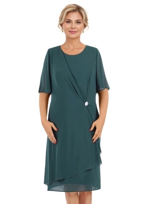 Szyfonowa sukienka z marszczoną zakładką, zielona kreacja na wesele 37073