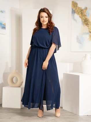 Luźna sukienka z szyfonową górą 18275, atrakcyjna kreacja z ozdobnymi wstawkami.