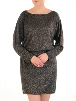 Połyskująca, czarna sukienka z gumą w pasie 34999