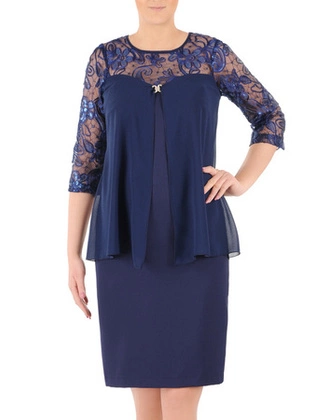 Sukienka z szyfonową narzutką, wyszczuplająca kreacja z koronkowymi rękawami 35135