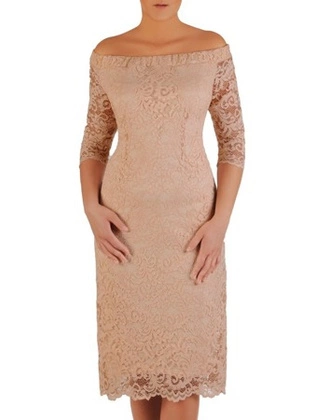 Prosta sukienka z koronki, kreacja z odkrytymi ramionami 22576