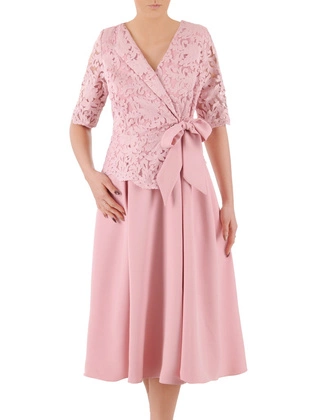 Pastelowa sukienka z koronkowym bolerkiem, wizytowa kreacja w modnym fasonie 19817